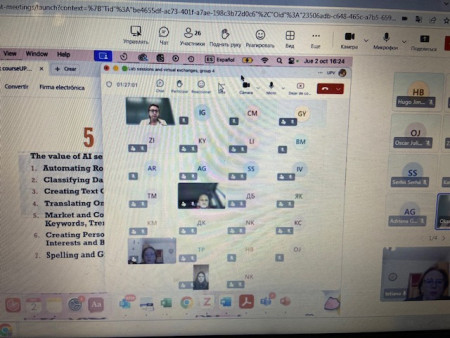 03 жовтня 2025 р. у межах розвитку академічного співробітництва кафедри управління персоналом, економіки праці та економічної теорії і української, іноземних мов та перекладу долучилися до проєкту віртуального обміну - 2025: «Спільні шляхи досягнення Цілей розвитку та штучного інтелекту» за ініціативою Політехнічного університету Валенсії (Іспанія) – координатор команди дидактичних інновацій iPLUS (UVP) Оксана ПОЛЯКОВА-НЕСТЕРЕНКО.